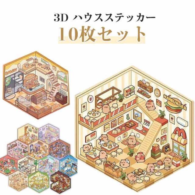 3D シール 立体 ステッカー 10枚セット 造形 シーンシール ストレス解消 紙ミニチュア模型 ドールハウス 紙 造景シール 10枚セット 初心者 おもちゃ 紙ドールハウス ミニチュアハウス シール ハウスステッカー 趣味 シール貼るやつノートに部屋作る