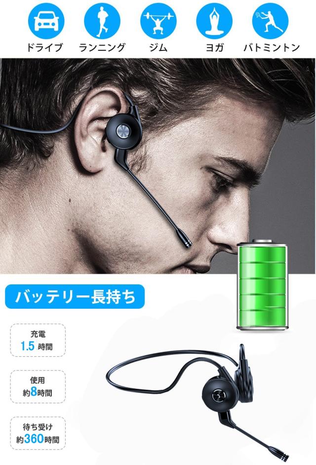 骨伝導イヤホン 片耳イヤホン ワイヤ レスヘッドホン テレワーク在宅ワークに最適 最強ノイズキャンセリングマイク運転中の通話でもきちんと相手に届きます ワイヤレスイヤホン bluetooth 5.0 骨伝導設計 無線 ブルートゥース 耳掛け