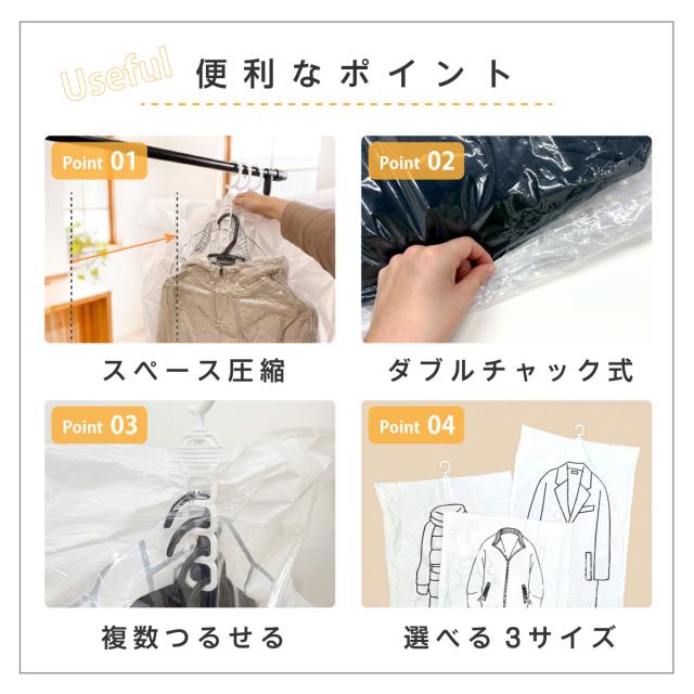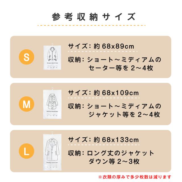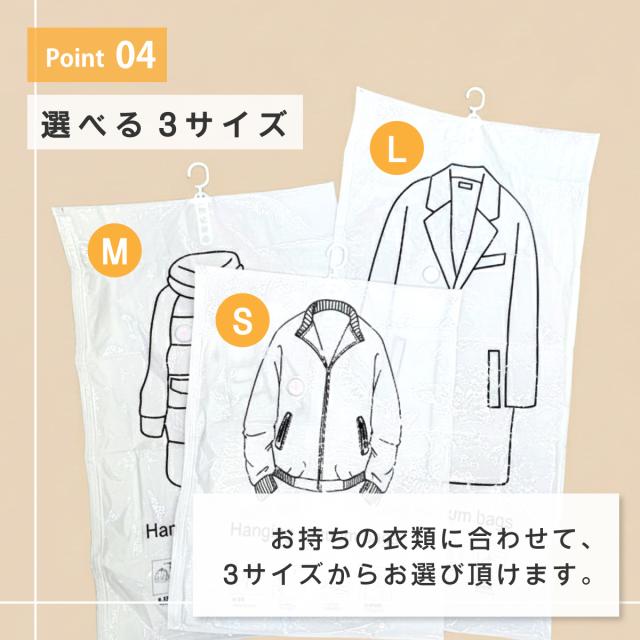 圧縮袋 衣類 衣類圧縮袋 S・M・Lサイズ 各2枚 6枚セット 吊り下げ 1袋で4着同時圧縮 旅行用 クローゼット 吊るせる 収納袋 ダウンジャケット コート アウター ハンガー バルブ式 衣替え 防カビ 防ダニ 防臭 湿気対策 c-vc-bag