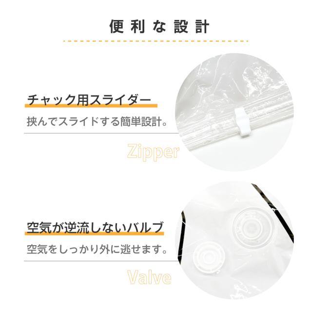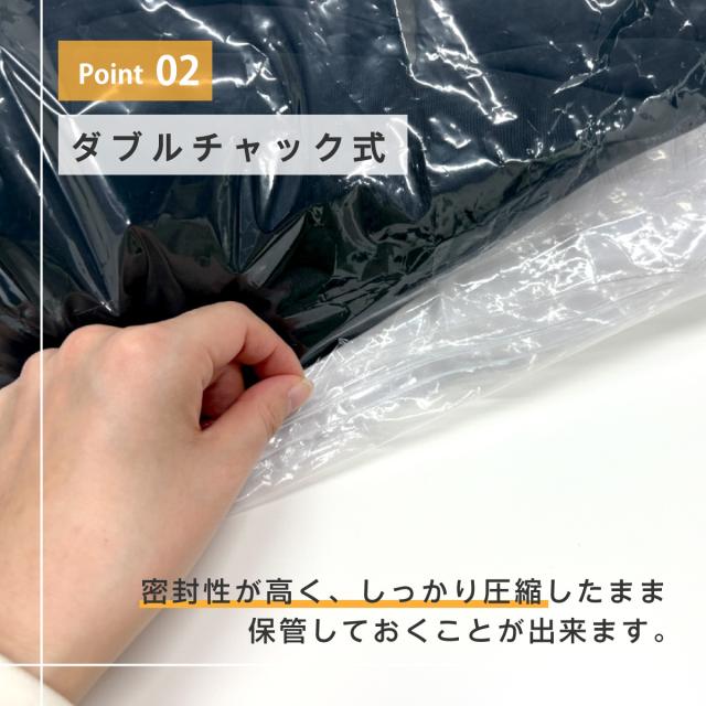 ダブルチェック式の密封構造で、しっかり圧縮したまま長期保管が可能。