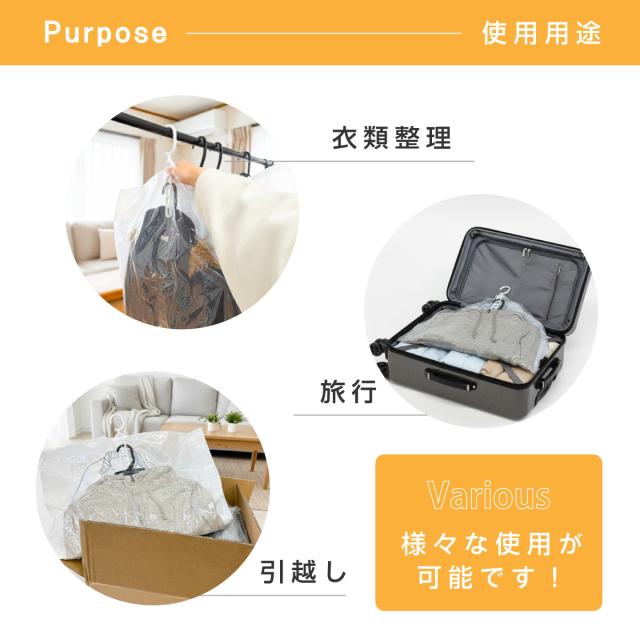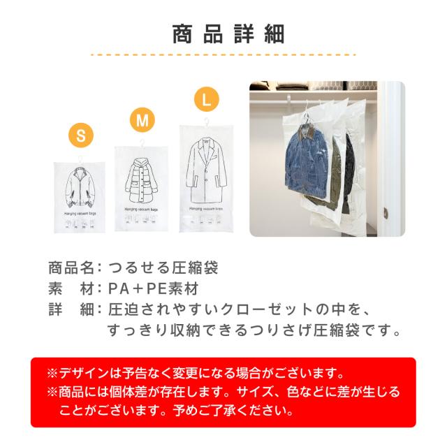 つるせる圧縮袋 6枚セット|S・M・L各2枚|ハンガー付き衣類圧縮袋