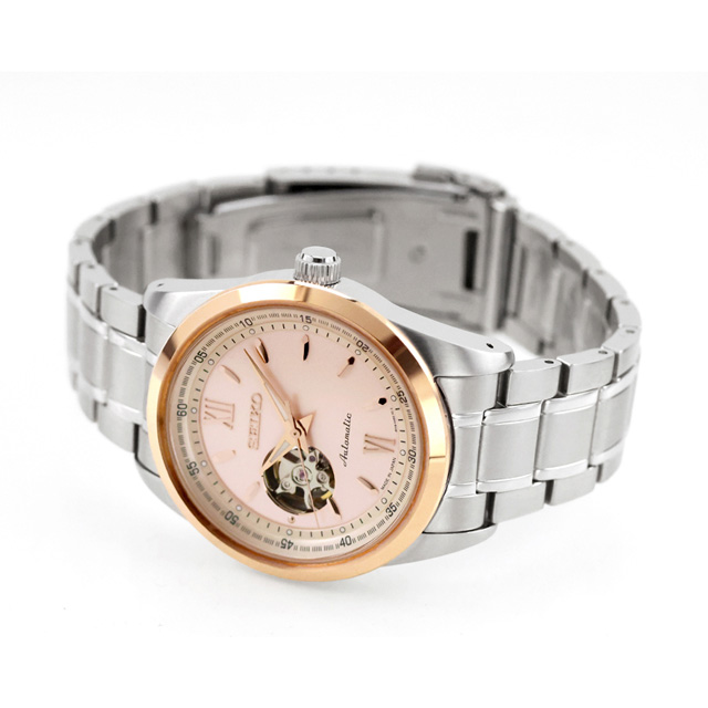 正規品 7年保証キャンペーン 送料無料 セイコーセレクション 数量限定 日本製 自動巻き メンズ 腕時計 SCVE064 SEIKO SELECTION 2026 SAKURA Blooming Limited Edition アナログ ピンク ◆水面に映る桜の美しさ、“逆さ桜”をテーマにしたモデルが登場。シンプルなオープンハートにダイヤルのカラーとデザインが調和するデザイン。桜の花びらをイメージしたインデックスと、サーモンがかった優しいダイヤルカラーが調和する、特別なペアモデルです。春の訪れを感じさせるカラーリングと放射の輝きで情景を表現しました。すっきりとしたデザインで、シーンを選ばず日常使いしやすい一本です。 発売日:2026年1月発売 機械式腕時計