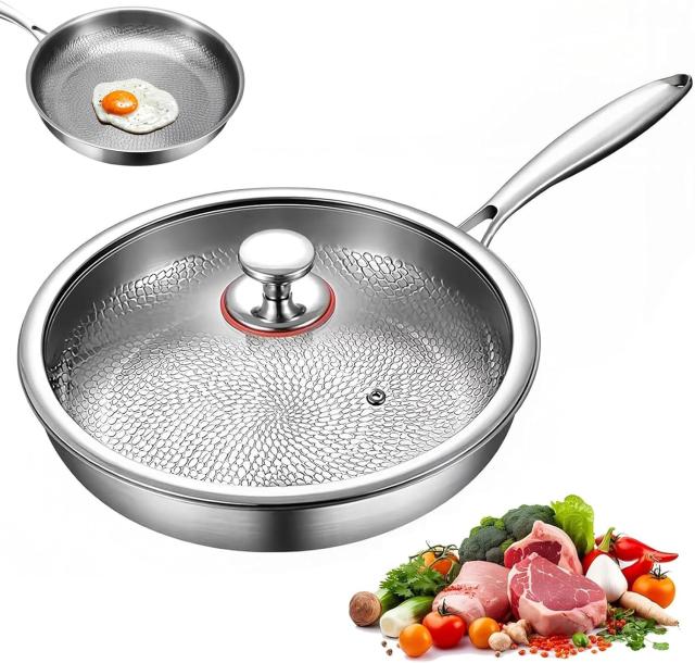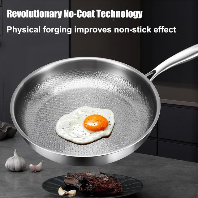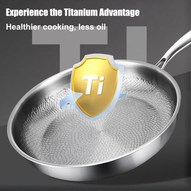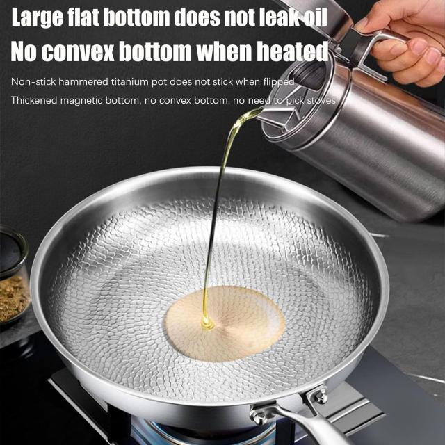 蓋付きチタンハンマーパンプロ、傷防止ノンスティックコーティングなしチタンパンフライパン、魚鱗加工、平底、コーティングなし、すべてのクックトップ用