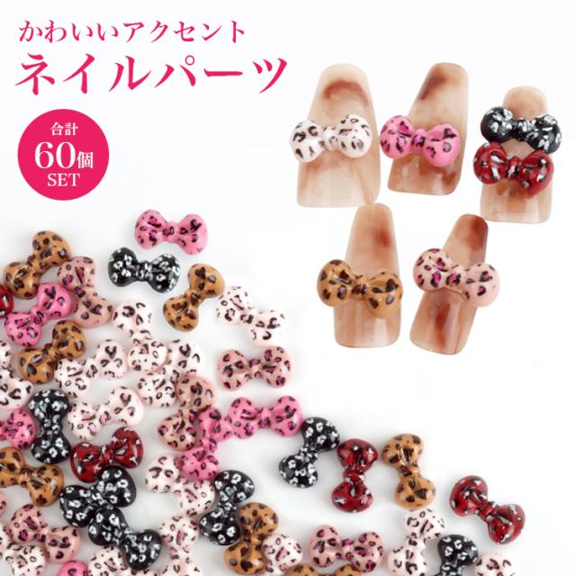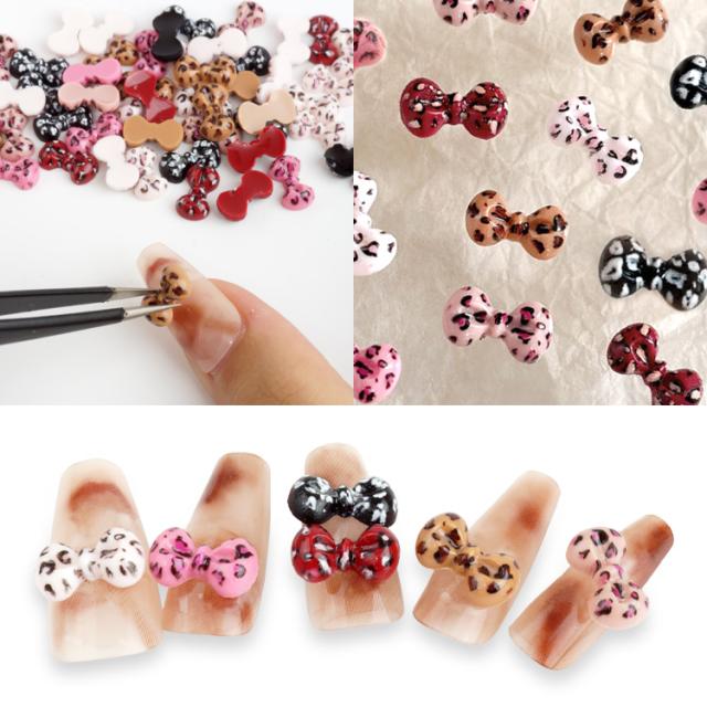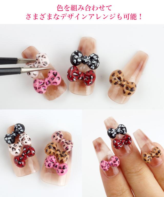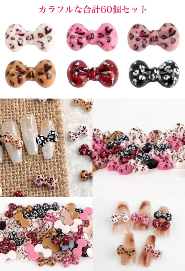 豹柄 リボン ネイルパーツ デコパーツ りぼん ギャル Y2K ぷっくり ヒョウ レオパード アニマル柄 ジェルネイル 大容量 カラフル ハンドメイド レジン 立体 3D