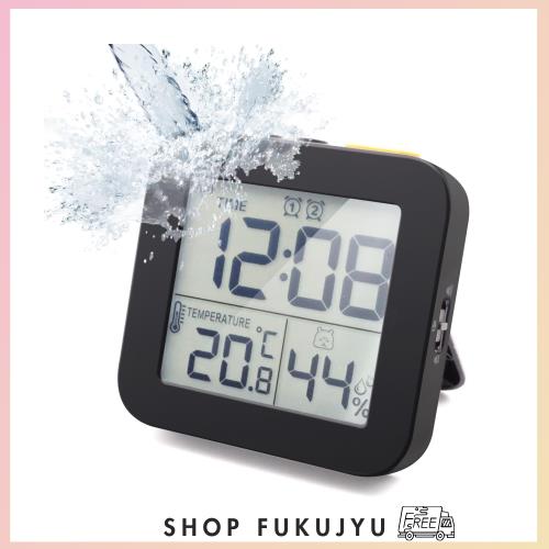 時計 デジタル時計 防滴型防水 タイマー 温度計 湿度計 LCDディスプレイ 目覚まし時計 お風呂時計 壁掛け 卓上置き 浴室 バスルーム 洗面所 台所 部屋用 中庭 ルーム シャワー用(ブラック)
