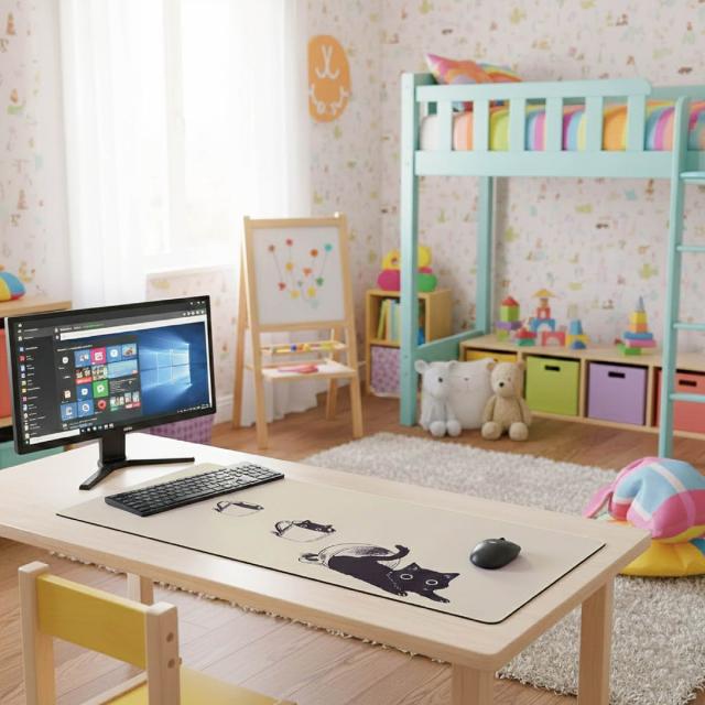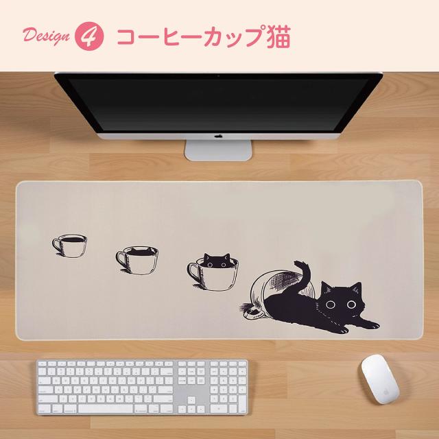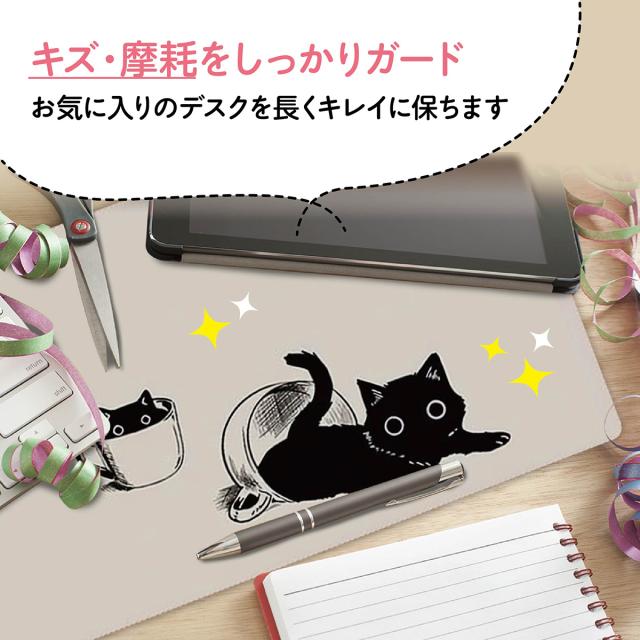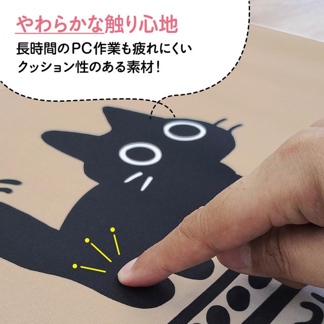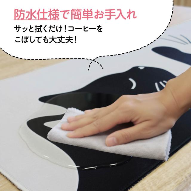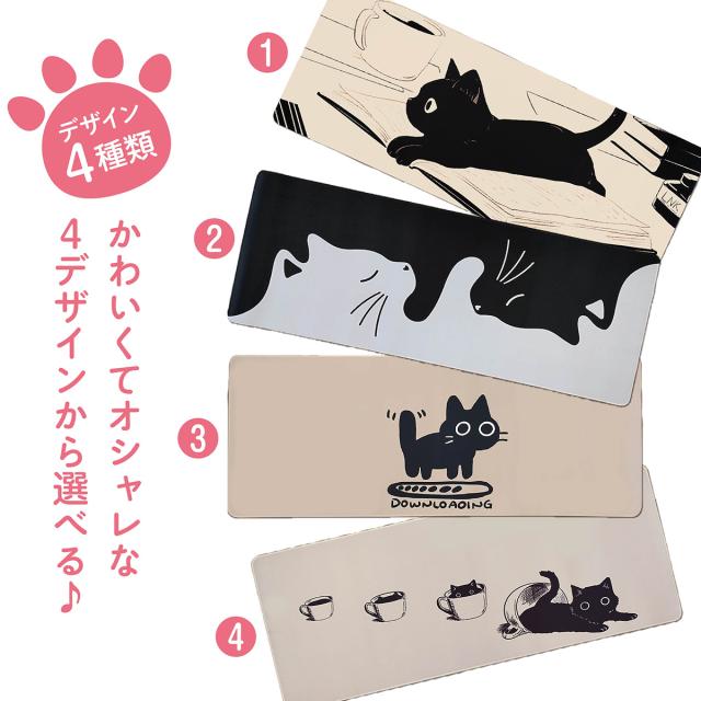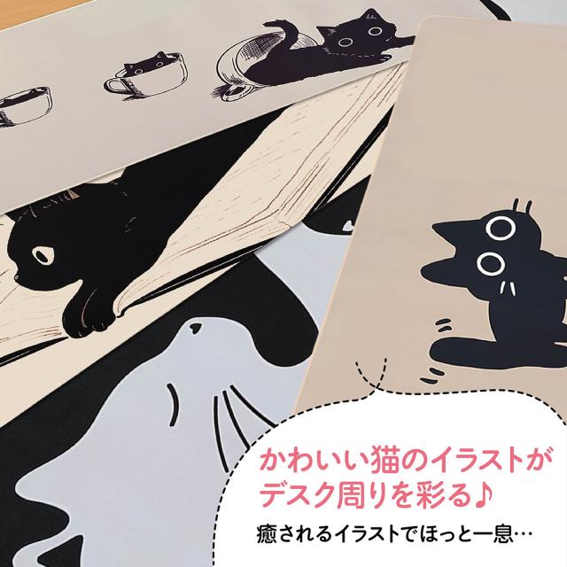 かわいい猫のイラストがデスク周りを明るく彩る大型マウスパッド。