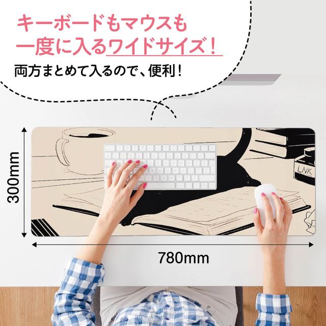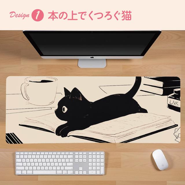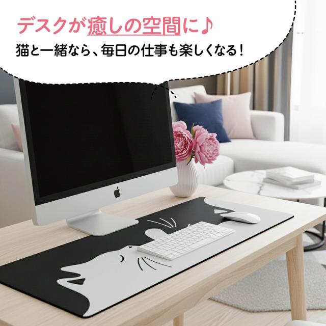 大型 かわいい猫のマウスパッド|デスクを癒すワイドサイズ|防水・ノンスリップ仕様