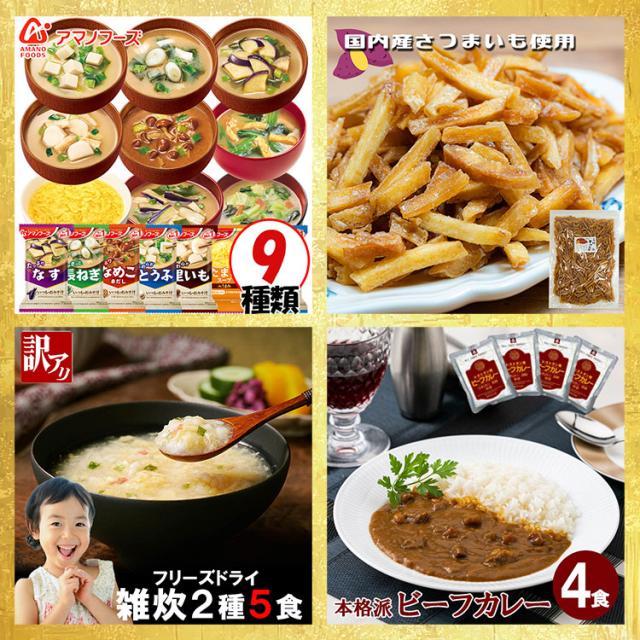 [am] フリーズドライ福袋100食+選べる1000円ポッキリ! アマノフーズ 100食 10種 + 選べる 1000ポキ おみそ汁 お味噌汁 芋けんぴ 雑炊 レトルト カレー チーズケーキ そら豆 そうめん サラダチキン 食品 送料無料