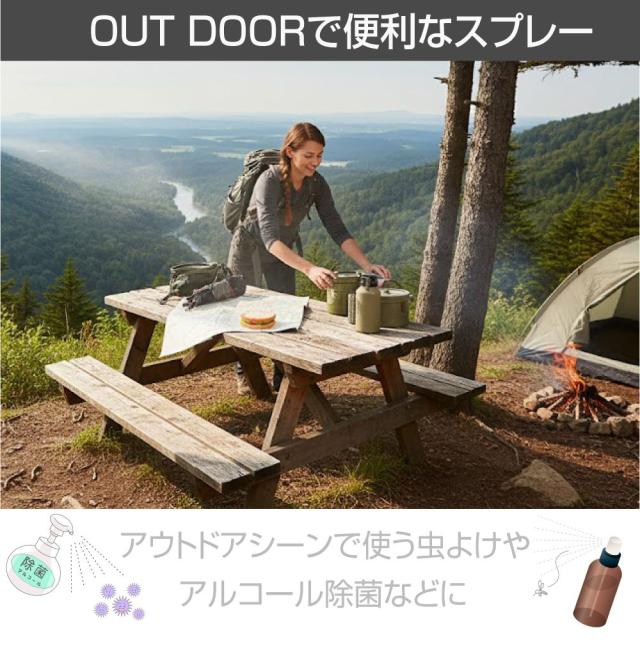 便利なカラビナが付いた スプレーボトル 80ml です。 ポリエチレンボトルなのでアルコールに耐えられます。 アウトドアハードに映えるデザインです! |