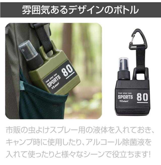 | 商品名 | アウトドア用 カラビナ付 スプレーボトル 80ml 全3カラー |