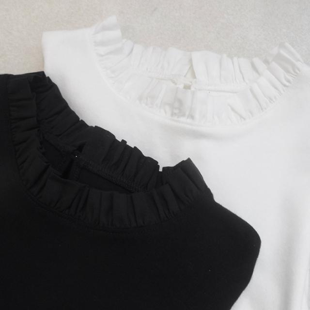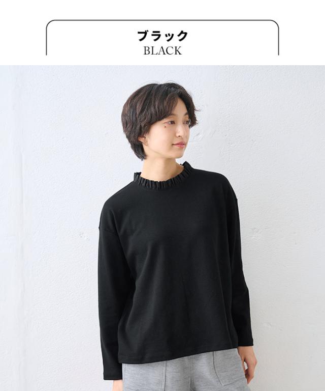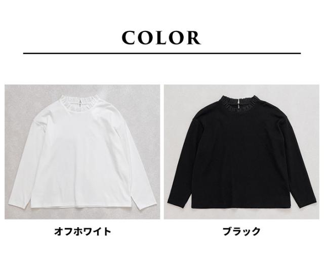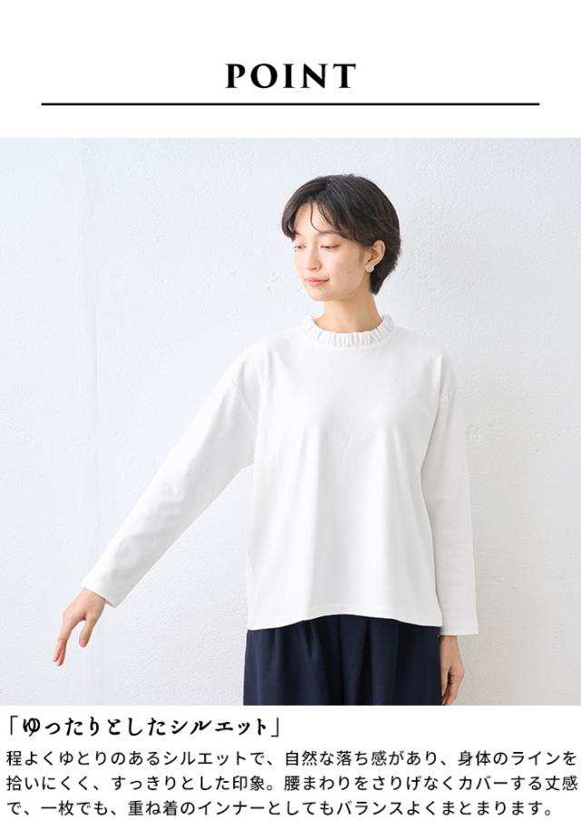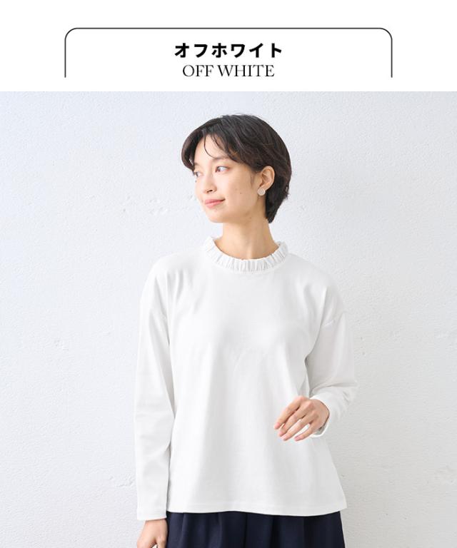 コットン100% フリル襟 カットソー プルオーバー / 日本製 40代 50代 60代 レディース Tシャツ 長袖 襟付き コットン100 綿100 トップス きれいめ カジュアル フォーマル オフィス デイリー セレモニー 入学式 卒業式 重ね着 ジャケット インナー