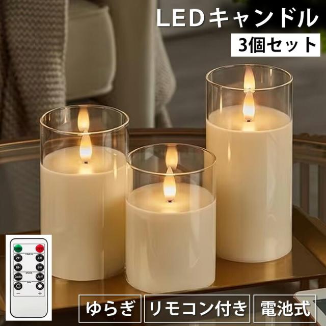 【3個セット】LEDキャンドル リモコン付き 無火 安心火を使わない インテリアライト 寝室 リビング テラス 間接照明 調光機能 タイマー付き 揺らぐ炎 リアル炎風 誕生日 パーティー クリスマス ハロウィン 結婚式 ギフト おしゃれ 北欧風 ナチュラル雑貨 電池式 送料無料