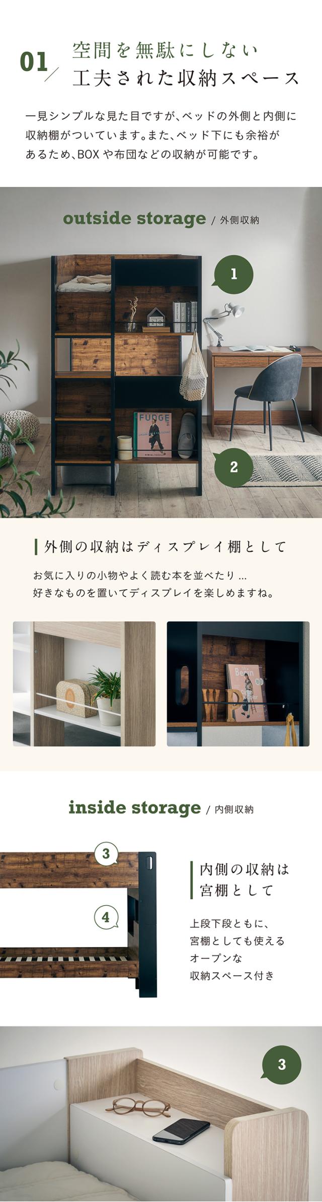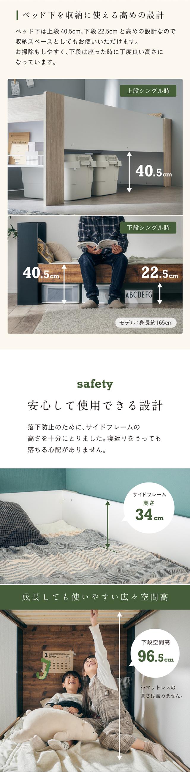 2段ベッド 二段ベッド 子供 大人 分割 分離 すのこ 宮付き マットレスセット Lapis(ラピス)+Unity(ユニティ) 2色対応 二段ベット 2段ベット シングルサイズ おしゃれ 木製 コンパクト 敷布団 子供部屋