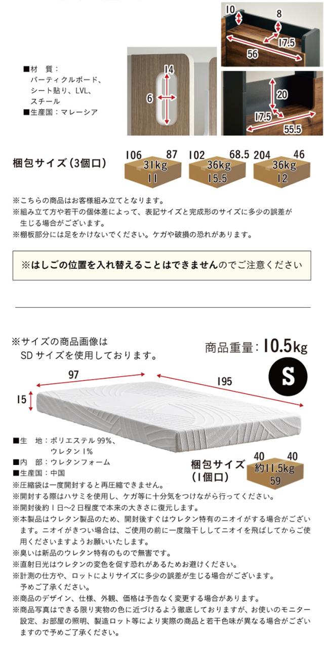 マットレス:約W97 x D195 x H15cm