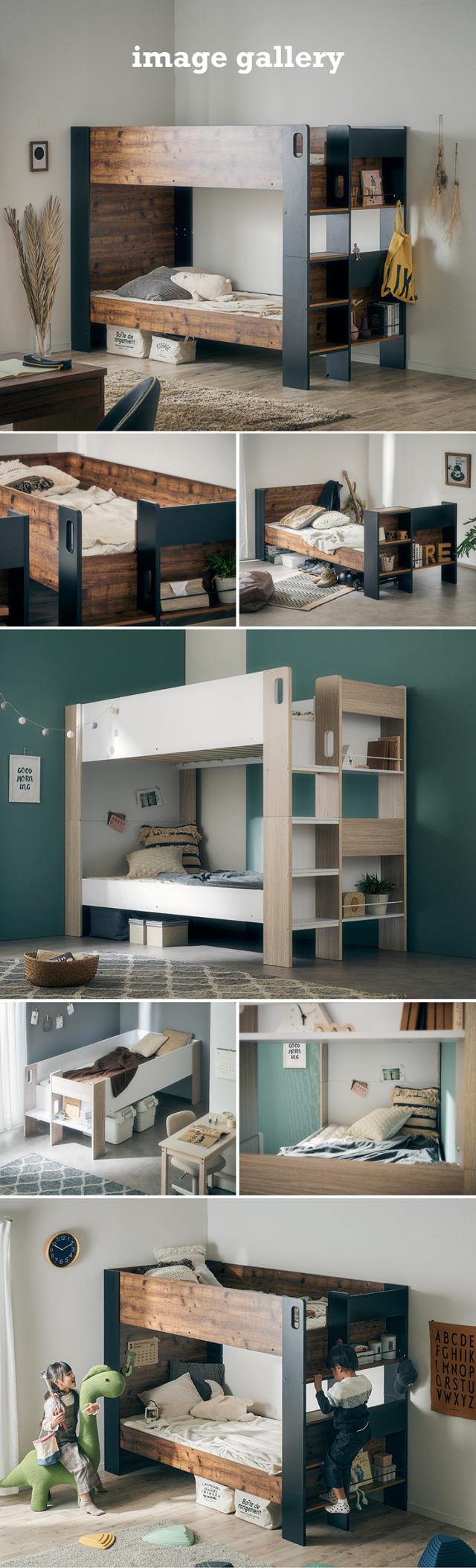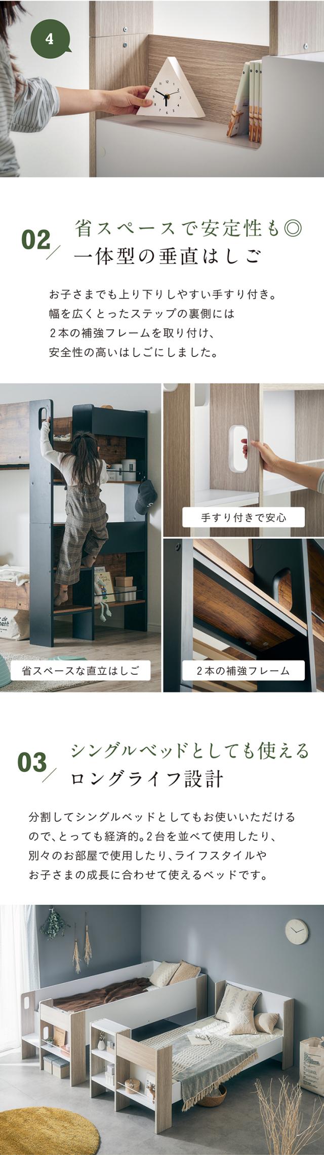 2段ベッド 二段ベッド 子供 大人 分割 分離 すのこ 宮付き マットレスセット Lapis(ラピス)+Unity(ユニティ) 2色対応 二段ベット 2段ベット シングルサイズ おしゃれ 木製 コンパクト 敷布団 子供部屋