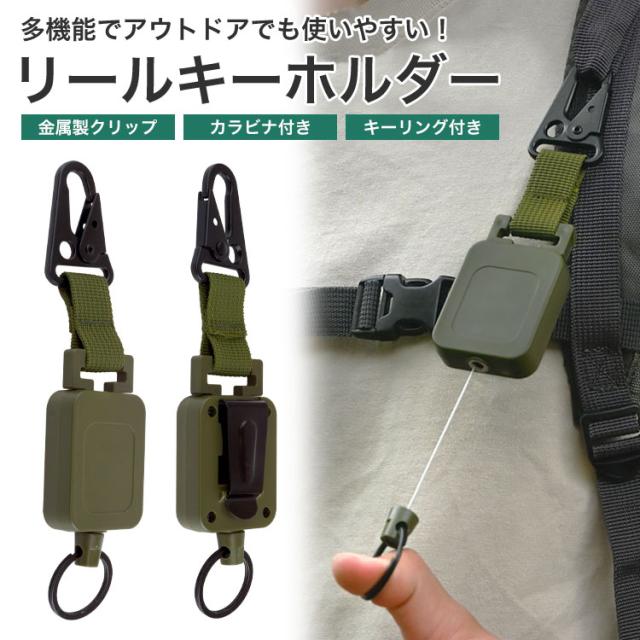 リール キーホルダー キーリール カラビナ クリップ コード 伸びる キーリング 伸縮 軽量 鍵 アウトドアグッズ 釣り キャンプ アウトドア
