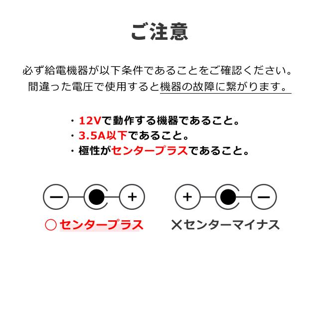 ※機器の消費電力が12V/3.5A以上の機器には使用しないでください。