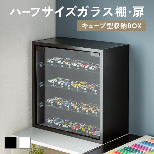 キューブ型収納ボックス ガラス扉 ハーフサイズ 幅35×奥行17×高さ35cm 4段式 推し活収納棚 アクスタ フィギュア ブラック ホワイト[100-CUBEH9]