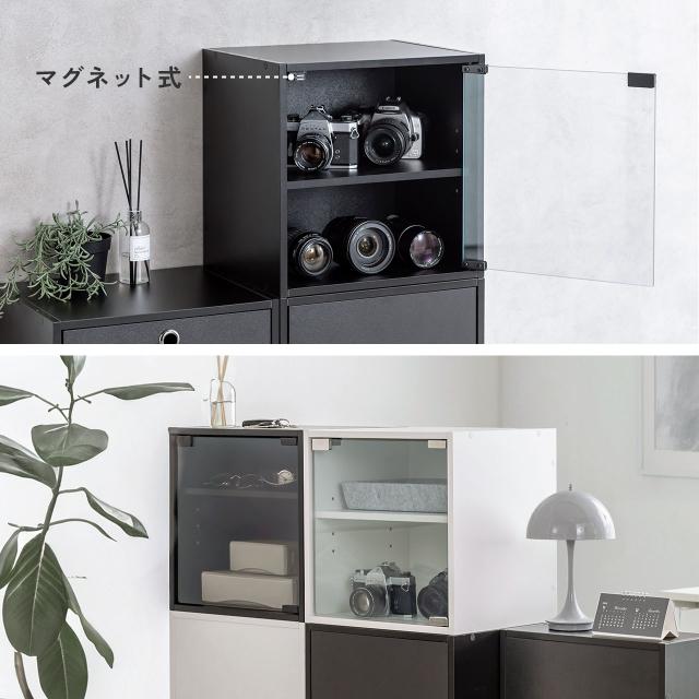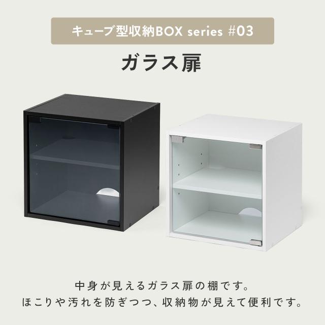 ●組み合わせて使える便利なキューブ型収納ボックスです。●ガラス扉付き、棚板1枚があり自由に収納ができます。