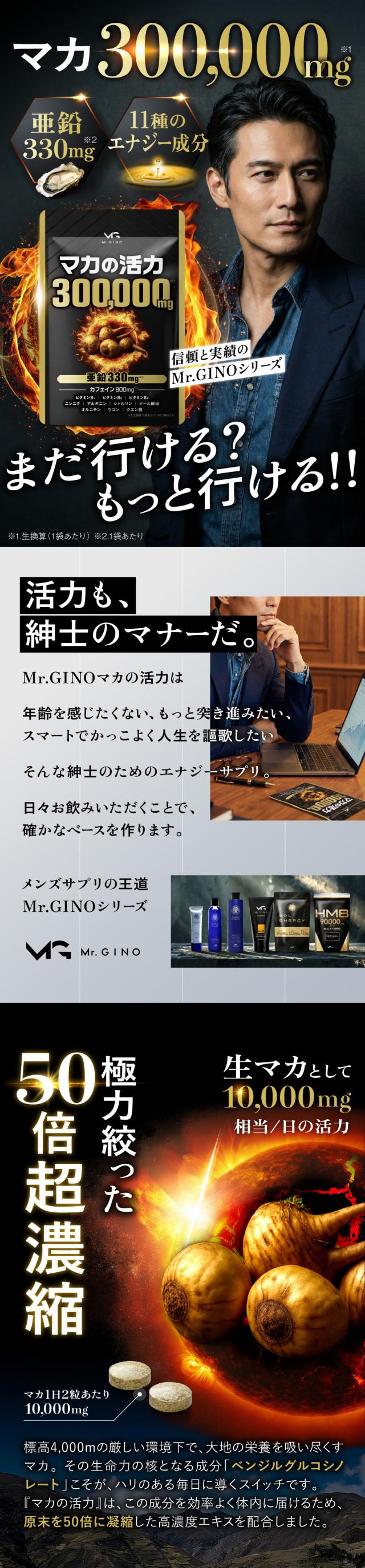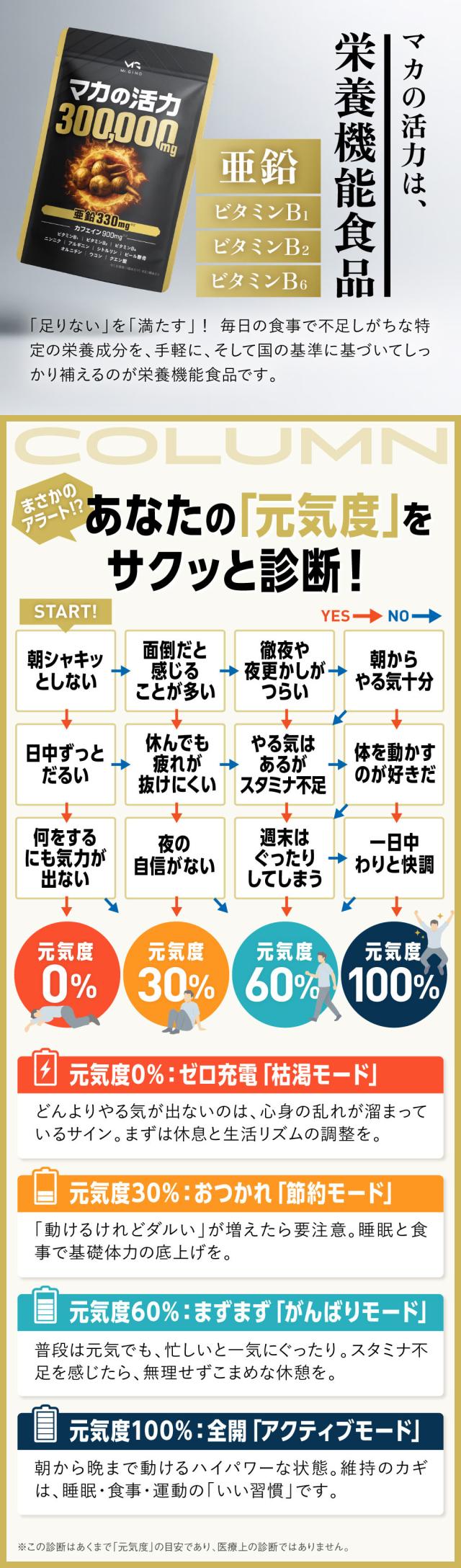 マカ300,000mg※高濃縮】 生マカ10,000mg相当/日※を濃縮配合。日々の健康維持をサポート。※1袋あたり