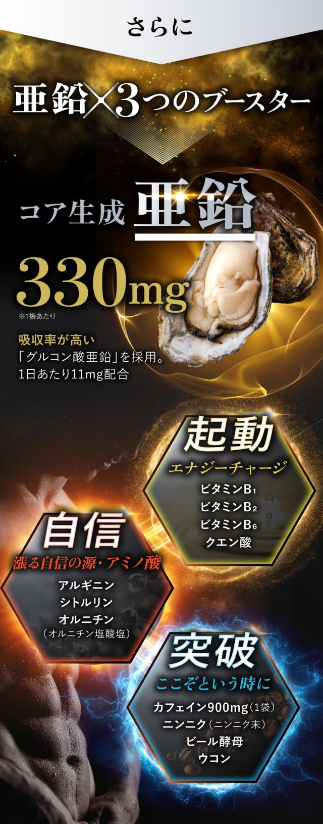 【男性の自信を支える亜鉛】 吸収率の高い「グルコン酸亜鉛」を11mg/日配合。