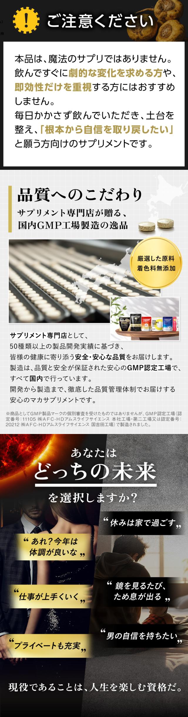 【11種の厳選エナジー成分】 マカの力を引き出すため、亜鉛やアミノ酸、ビタミンを含む計11種の成分を複合配合。