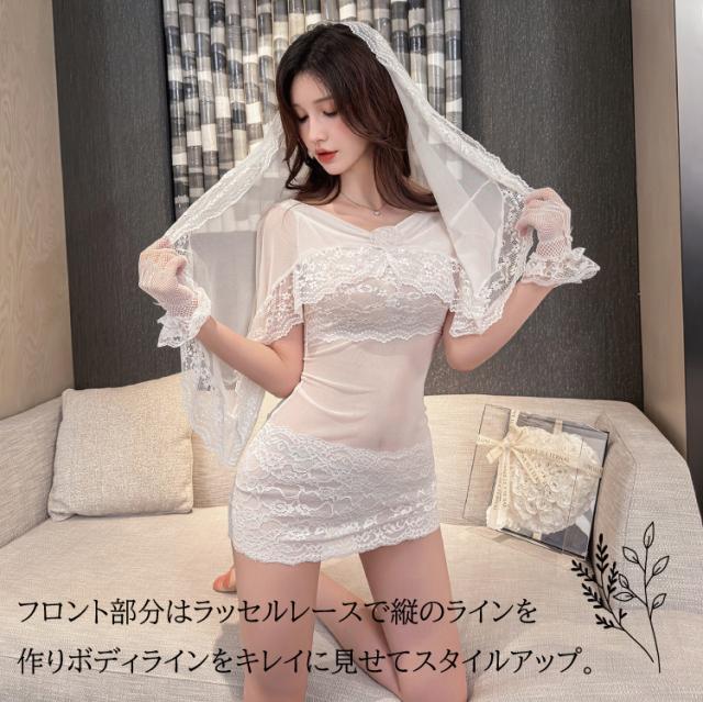 レディース セクシーランジェリー ウエディングドレス風ランジェリー ワンピース セクシーコスチューム3点セット