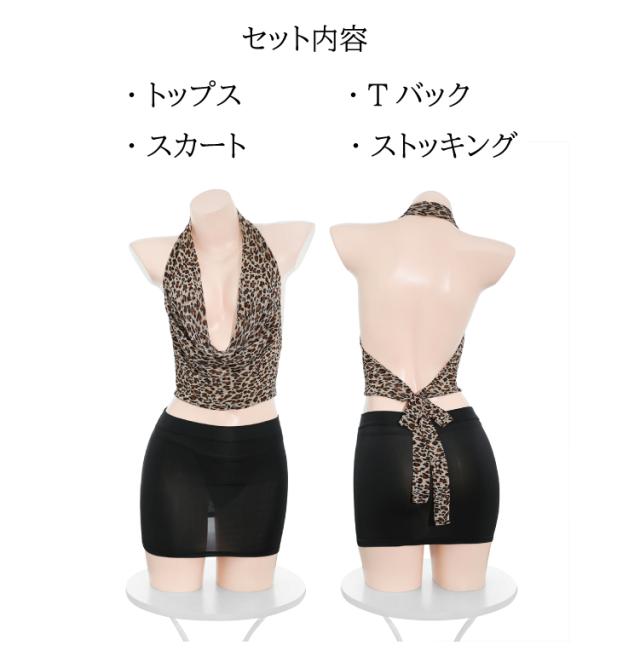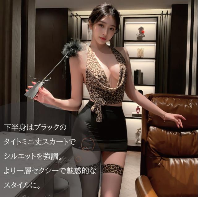 レディース 秘書風 コスチューム セクシーコスチューム 秘書風コスプレ セクシーランジェリー ミニスカート ヒョウ柄 レオパード フリーサイズ 4点セット