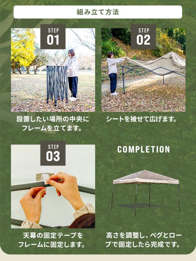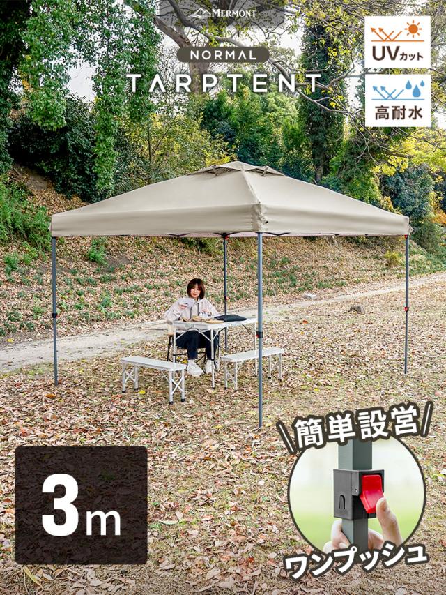 タープテント 3m×3m 耐水圧 3000mm ワンタッチ テント スチール タープ 日除け 撥水 頑丈 紫外線防止 UVカット ワンタッチテント ワンタッチタープ UV加工 簡単 大型 軽量 日よけテント おしゃれ アウトドア キャンプ 海 BBQ 送料無料 MERMONT WEIMALL