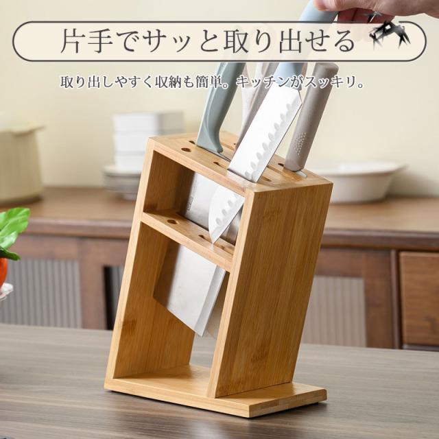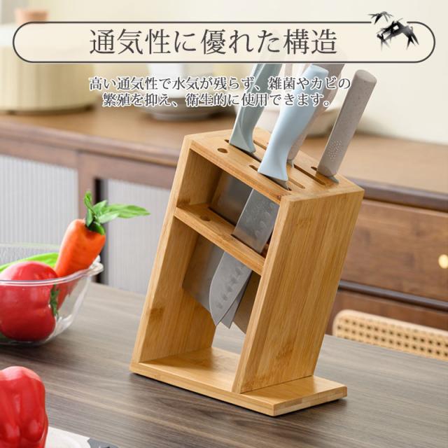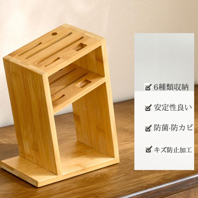 包丁スタンド 竹製 6本用 天然素材 ナイフスタンド 収納 水切り 包丁差し 包丁立て 包丁ホルダー キッチン用具収納 防菌 防カビ 高級感