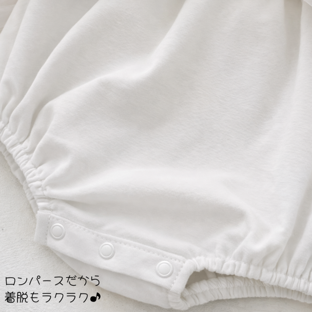 股下スナップボタン付きで、お着替えやおむつ替えも簡単♪