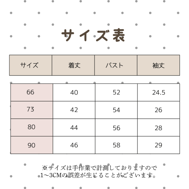 すべて平置きサイズです(採寸方法違いより、多少の誤差がございますので、ご了承ください)。