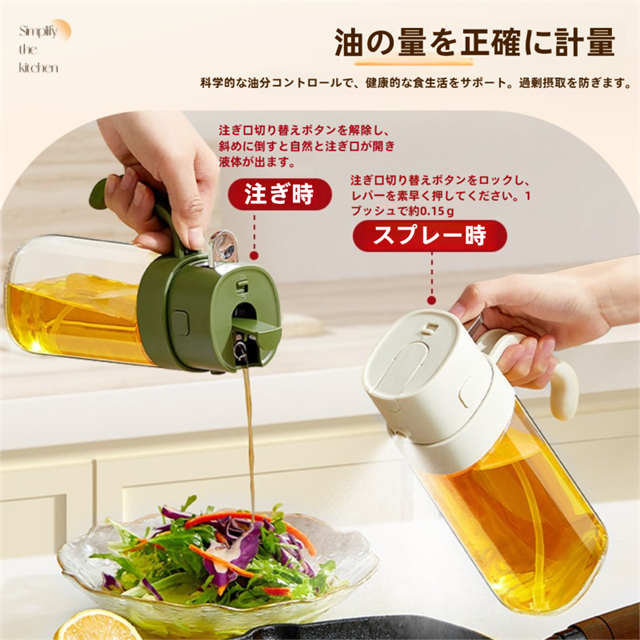 オイルスプレー オイルポット 両用 2way ガラス 550ml 霧吹き 油スプレー 料理用 油さし ミストスプレー 油 オイルボトル キッチン用 オリーブオイル スプレー 液だれしにくい 油こし器
