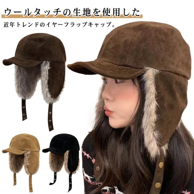 イヤーフラップ キャップ 耳あて 帽子 レディース フライトキャップ ファー 耳つきキャップ かわいい あたたかい 防寒 アウトドア キャンプ スキー 耳当て 耳つき パイロット 秋冬 山 雪 スノボ 耳あて付き帽子 ボア