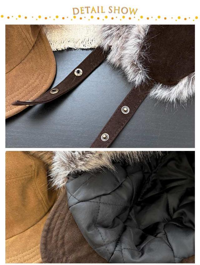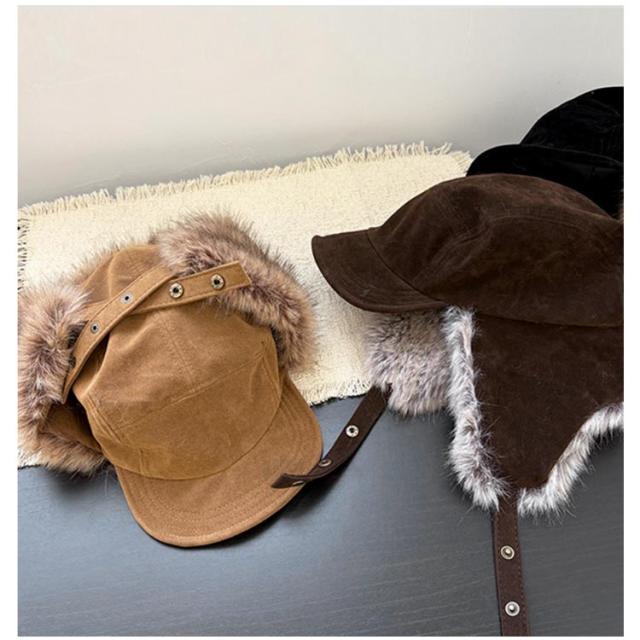 | ウールタッチの生地を使用した近年トレンドのイヤーフラップキャップ。 MIXファーでリアルな素材感のファーは丁度いいボリュームの耳当てと小ぶりのツバが可愛らしいデザイン。 ベースボールキャップよりファッション性が高く、 フライトキャップより気軽に被れる絶妙なバランス。 ワンランク上のキャップはいつものコーデにアクセントを加えてくれます◎ アウトドアや、寒い日のお出かけにオススメしたいキャップです。 耳当て部分を垂らすととても暖かく、おしゃれ用だけではなく防寒にも最適です。 | |