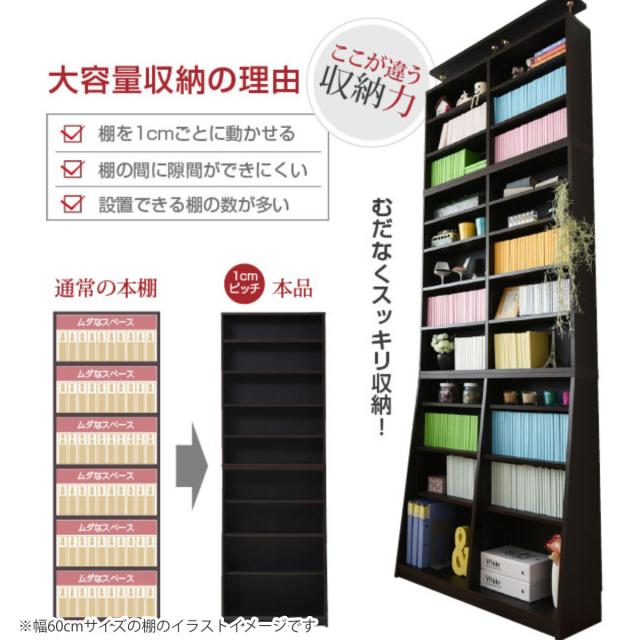 本棚 幅90cm 上置きセット 1cmピッチ スリム 大容量 可動棚 ( ラック 棚 1cm刻み A4対応 奥行スリム 飾り棚 ディスプレイ 雑誌 壁面 ダークブラウン ナチュラル ホワイト )
