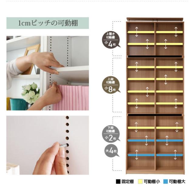 1cm単位で棚板の移動ができる大容量本棚