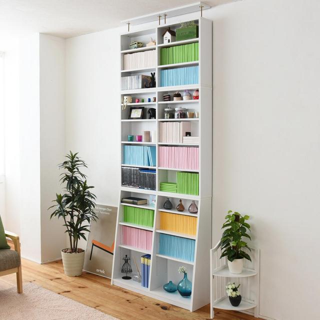 《 A4サイズ A4ファイル 文庫本 図鑑 コミック 書類 教科書 デスク横 家具 ブラウン 淡色 白 ホワイトインテリア 幅90 奥行30 奥行15 高さ180 cm センチ シンプル おしゃれ お洒落 オシャレ スタイリッシュ モダン 便利 リビング 書斎 趣味 推し 寝室 新生活 模様替 引っ越し 引越 壁面収納 突っ張り 上置き棚 》