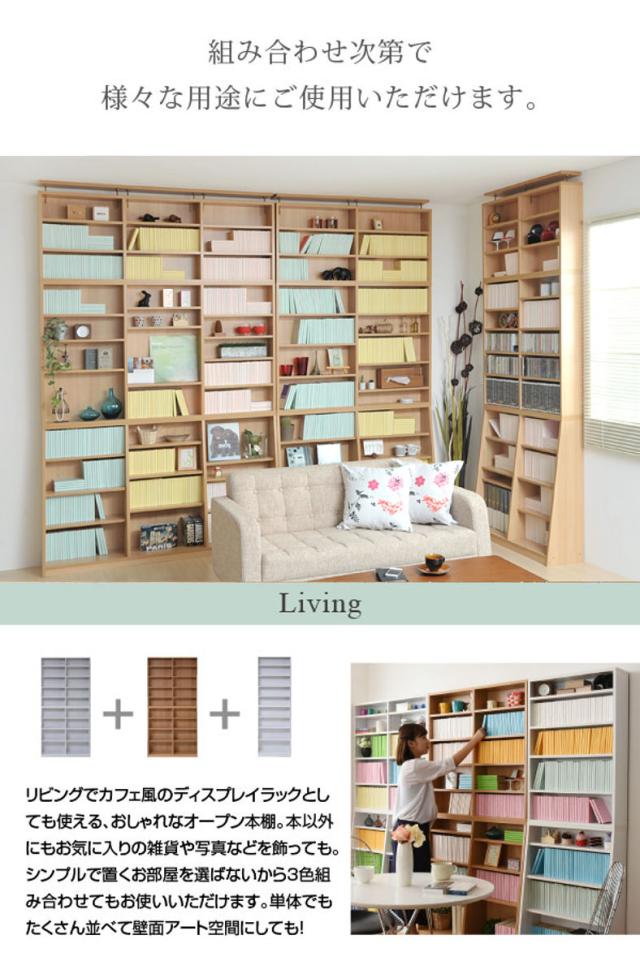 1cm間隔で棚板の移動ができるので収納するものに合わせて高さを調節できます。そのため無駄なスペースがなくなり、通常の本棚よりたくさん収納することができます。