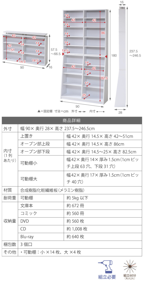 | サイズ | 約 幅90×奥行28×高さ237.5〜246.5(cm) |