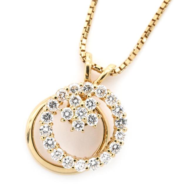 0.73ct天然ダイヤモンドネックレス K18YG フラワーモチーフ サークルモチーフ ダイヤネックレス イエローゴールド 地金6.0g 中古 送料無料