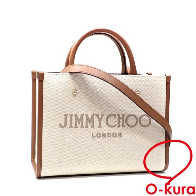 中古 ジミーチュウ アヴェニュー トートバッグ レディース ベージュ キャメル リサイクルコットン カーフスキン 2WAY ショルダー 肩掛