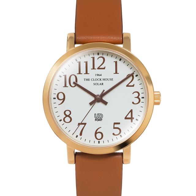12月25日発売 ザ・クロックハウス UD ユーディー 32mm LUD1003-WH3B メンズ レディース 腕時計 ソーラー 3針 ホワイトダイヤル ライトブラウン 革ベルト