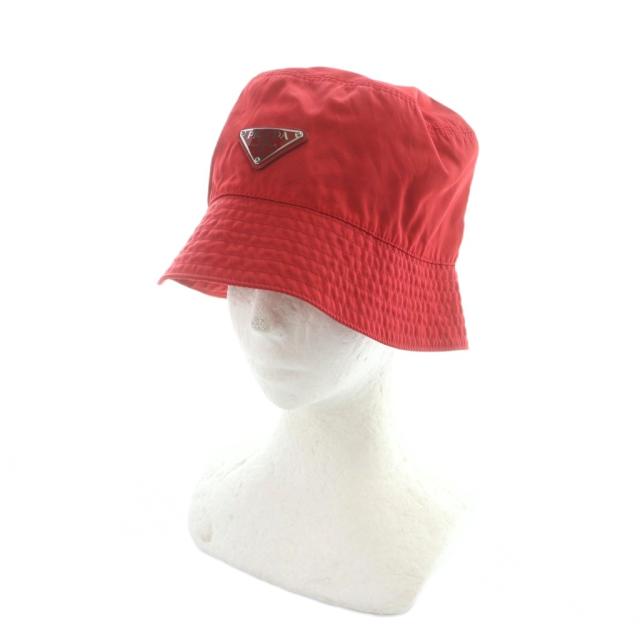 【中古】プラダ PRADA バケットハット 帽子 ロゴ ナイロン 赤 レッド 1HC137 2DMI ■GY18 /MQ ■OH メンズ