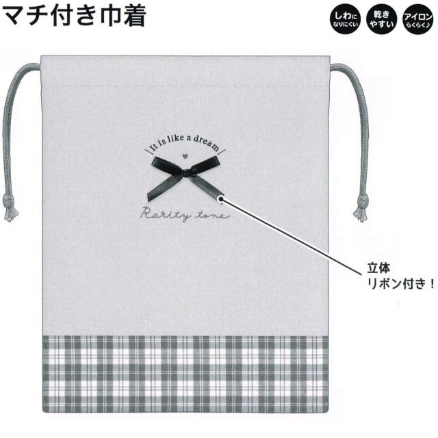 メール便 OK マチ付き 巾着 給食袋 女の子 向け リボン クラックス おしゃれ で かわいい 文房具