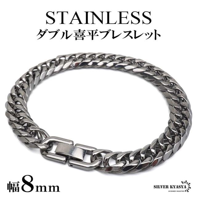 ステンレス ダブル喜平ブレスレット チェーンブレスレット メンズブレスレット 6面カット 幅8mm 18cm 21cm 中折れ式 定番 人気 存在感 つけっぱなしok 男性 金アレ対応