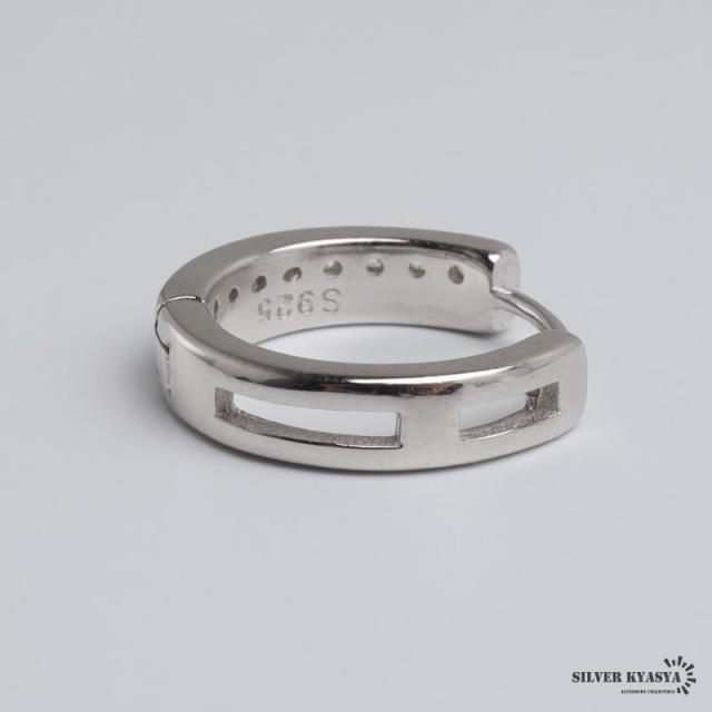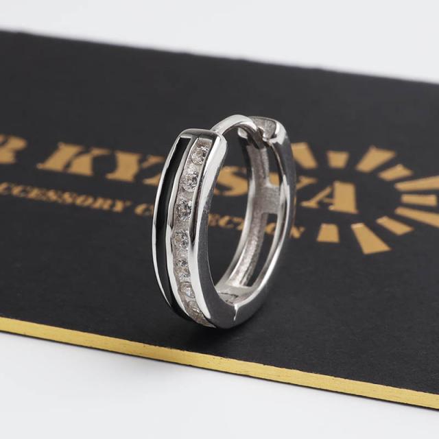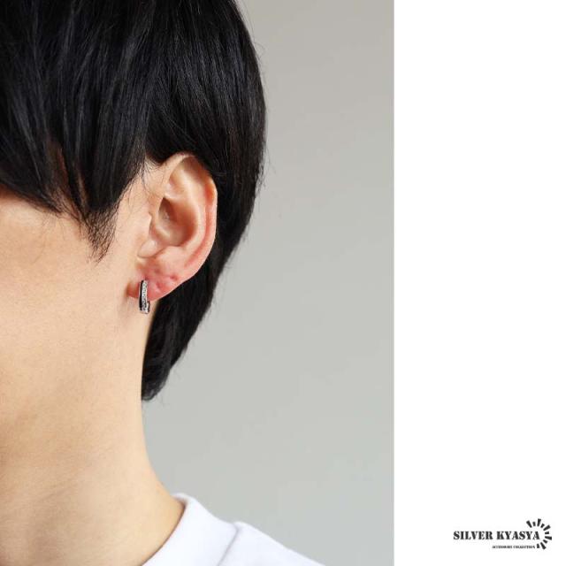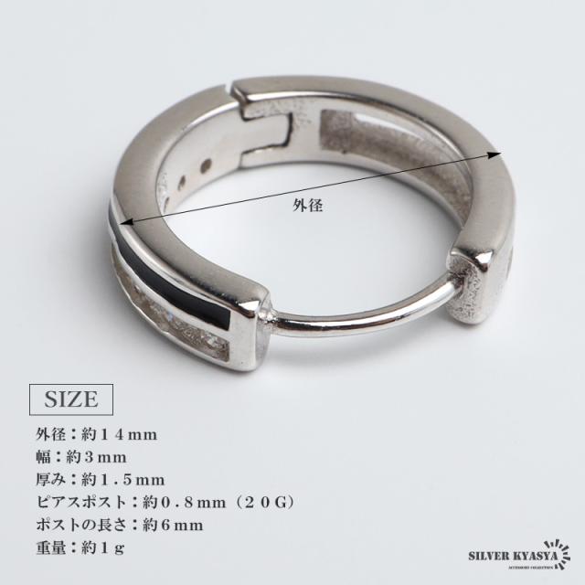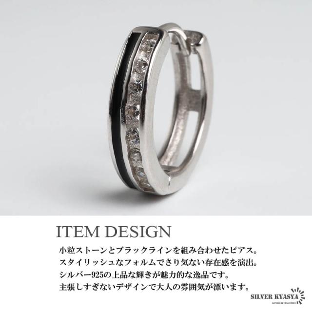 シルバー925 ストーンピアス フープピアス ブラックライン シルバーピアス キラキラ スタイリッシュ 大人 カッコイイ 小粒 片耳1点 メンズ 男性 金アレ対応