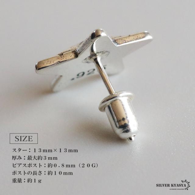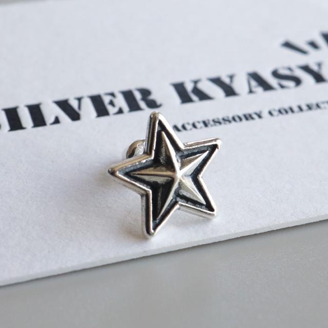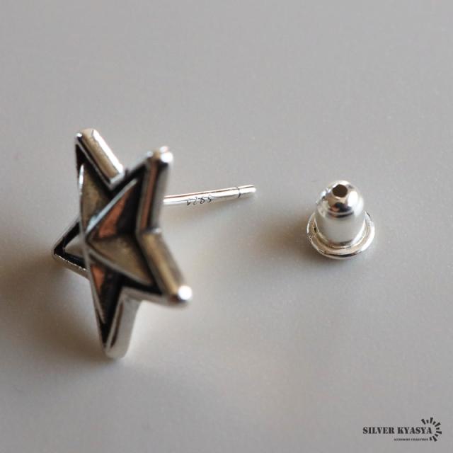 シルバー925 スターピアス 星ピアス シルバーピアス スタッドピアス ブラックライン アンティーク 大人 ワンポイント 燻し 立体的 片耳1点 レディース 女性 金アレ対応