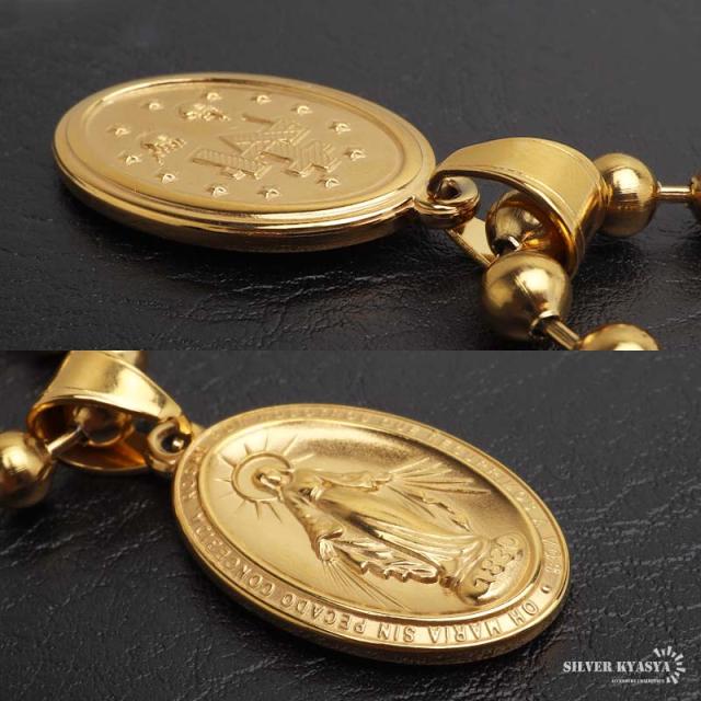 ステンレス マリアネックレス ボールチェーンネックレス ペンダントネックレス ゴールド 18KGP 不思議のメダイ 聖母 重厚感 HIPHOP B系 つけっぱなしok メンズ 男性 金アレ対応