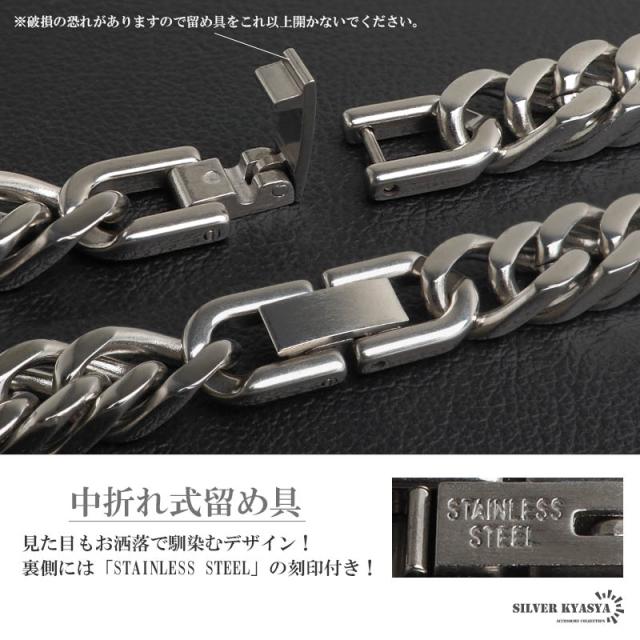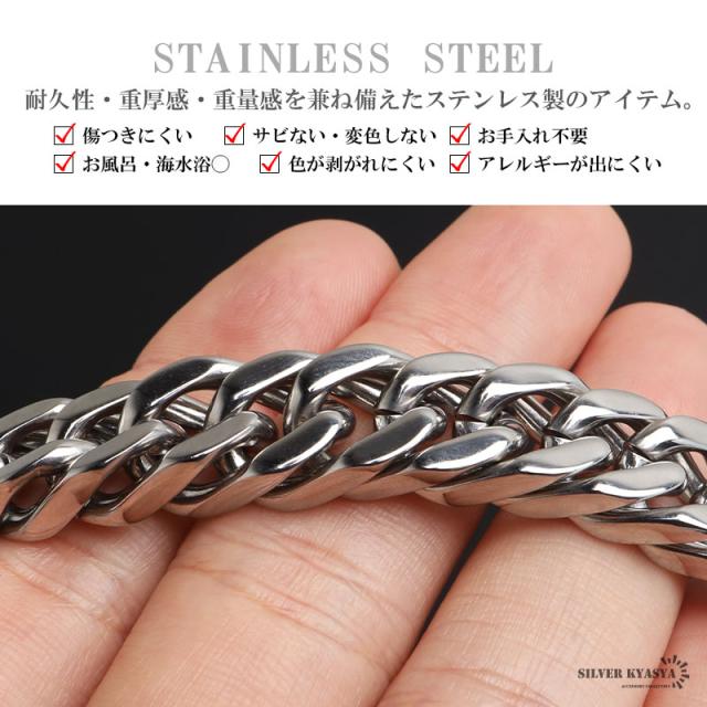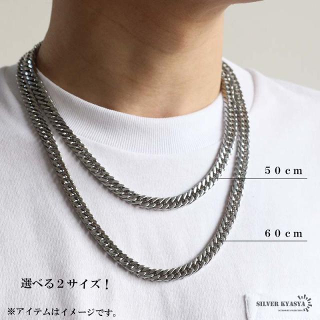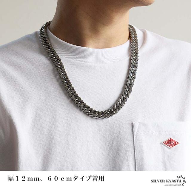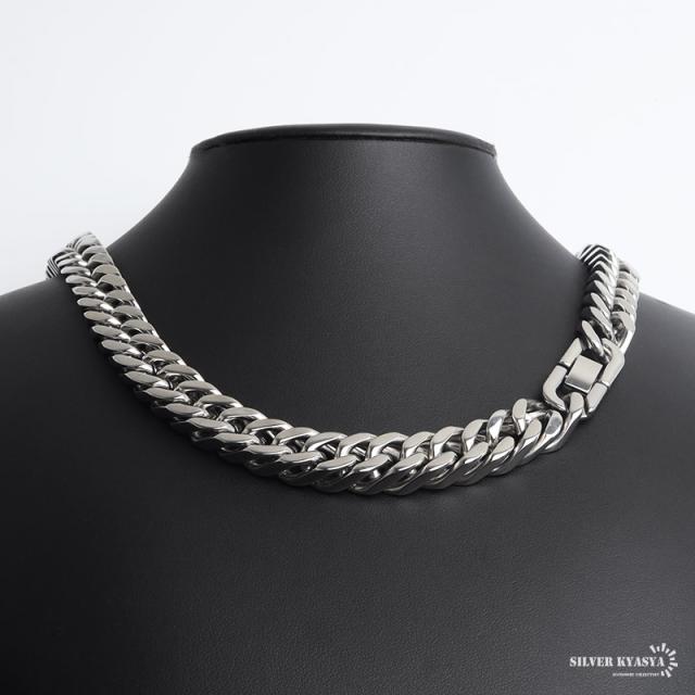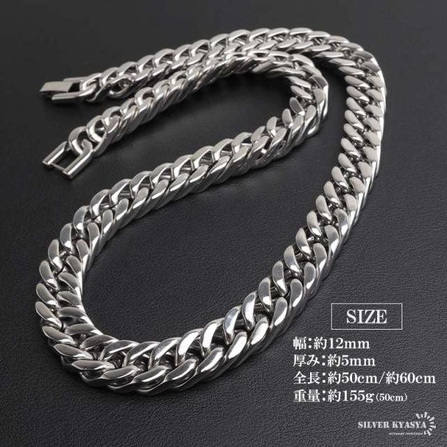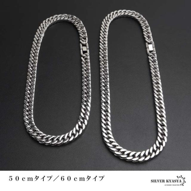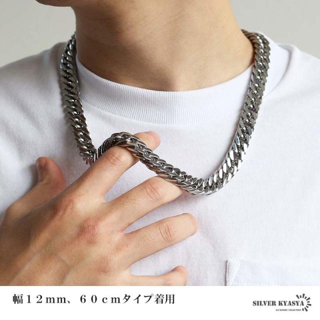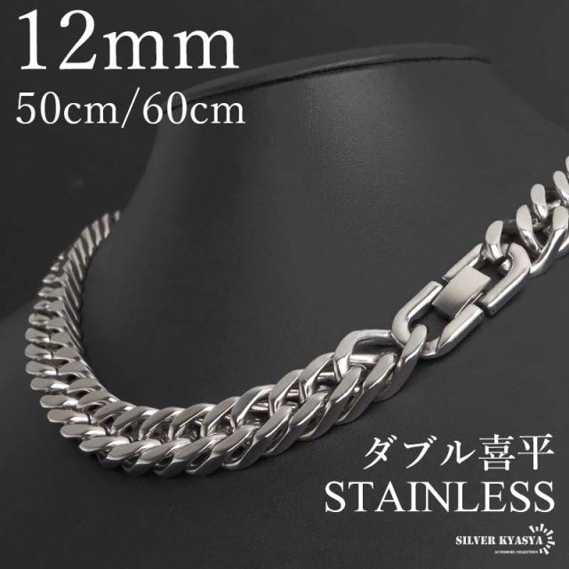 ステンレス ダブル喜平ネックレス 厚みあり チェーンネックレス メンズネックレス 4面カット 幅12mm 50cm 60cm シルバー 中折れ式 重厚感 定番 人気 存在感 つけっぱなしok 男性 金アレ対応